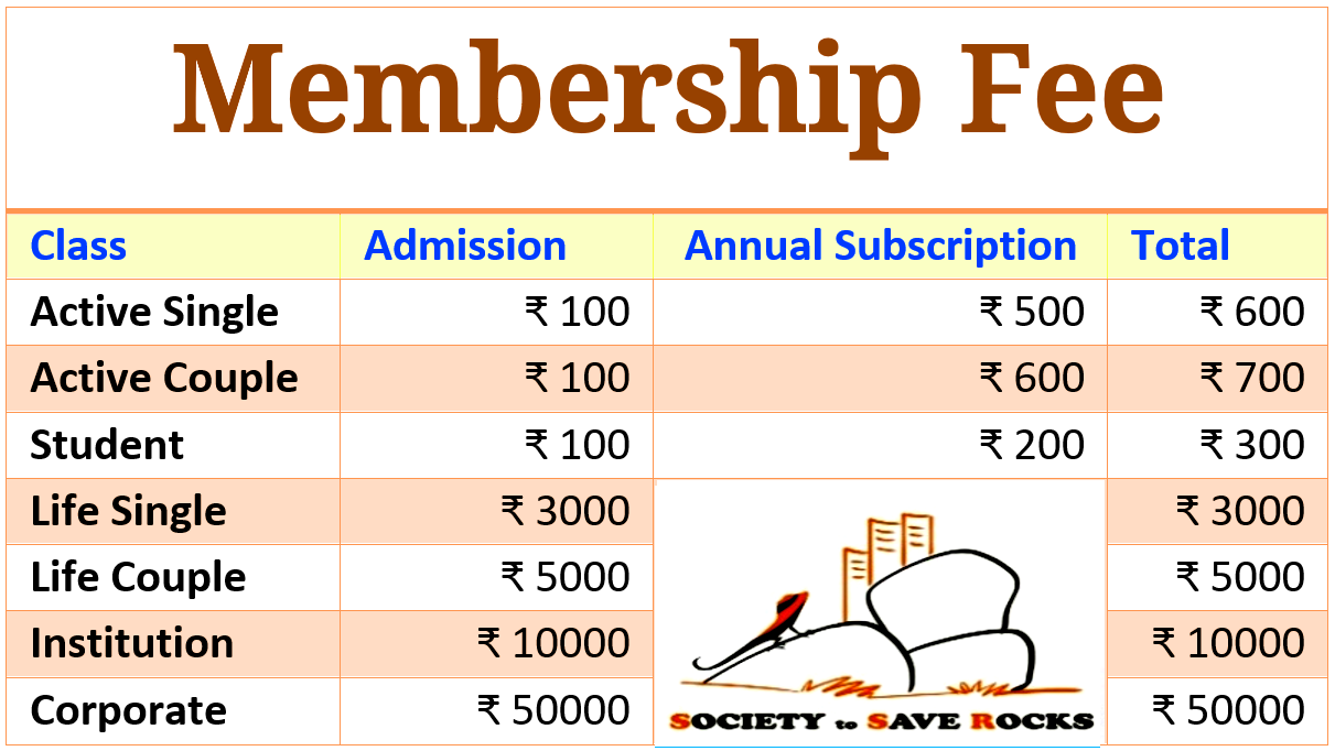 Note: Cheques and DDs should be in favour of Society to Save Rocks , Hyderabad.